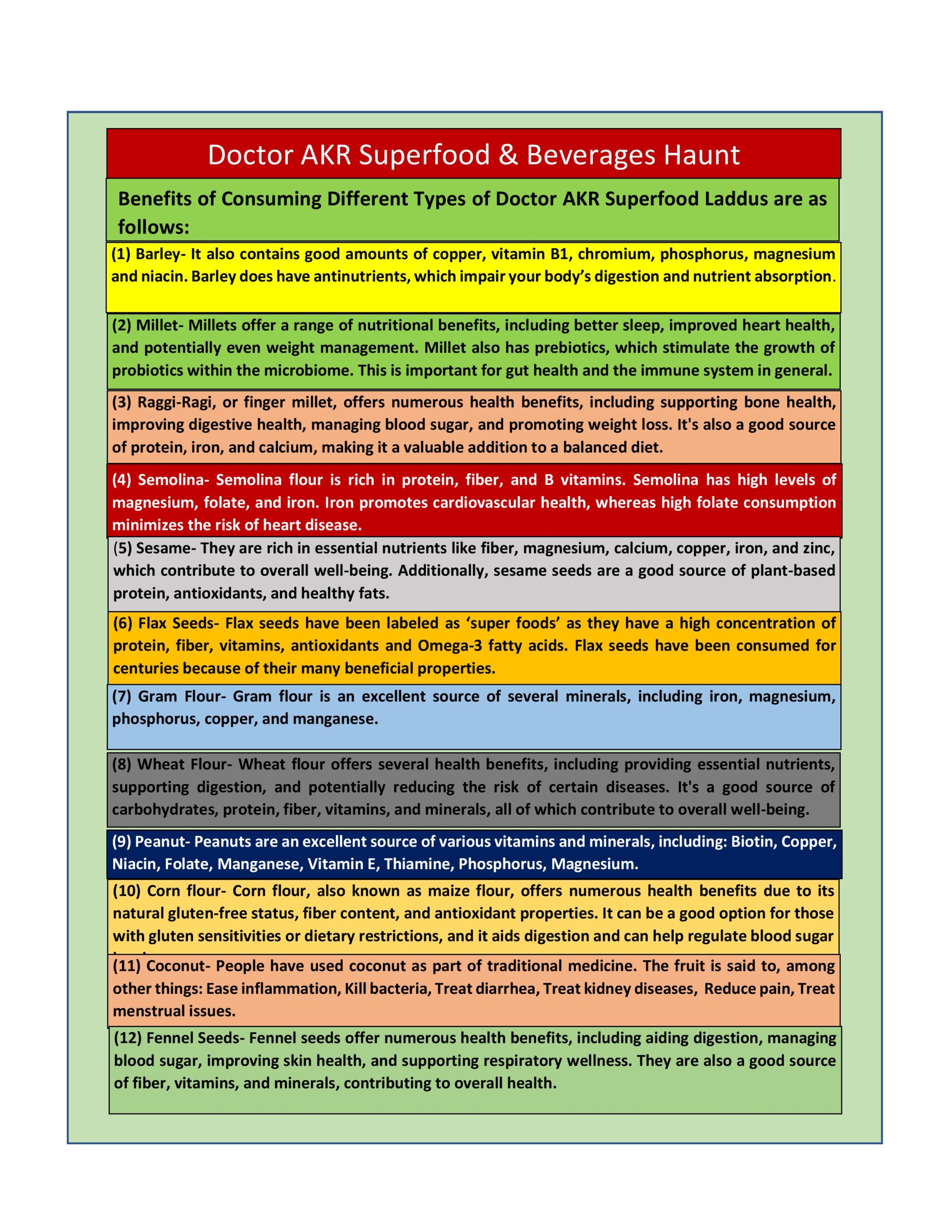 Our superfood laddo is very unique, it contains a very high nutritional value. Superfood laddus contains the next level of energy content. Generally, it is not available in a single pack. But we are providing it at your doorstep in a very easy and convenient way. You can keep it for a long duration of time. It will protect you from different kinds of diseases. Our types of Superfood laddu in a single pack are mentioned below.